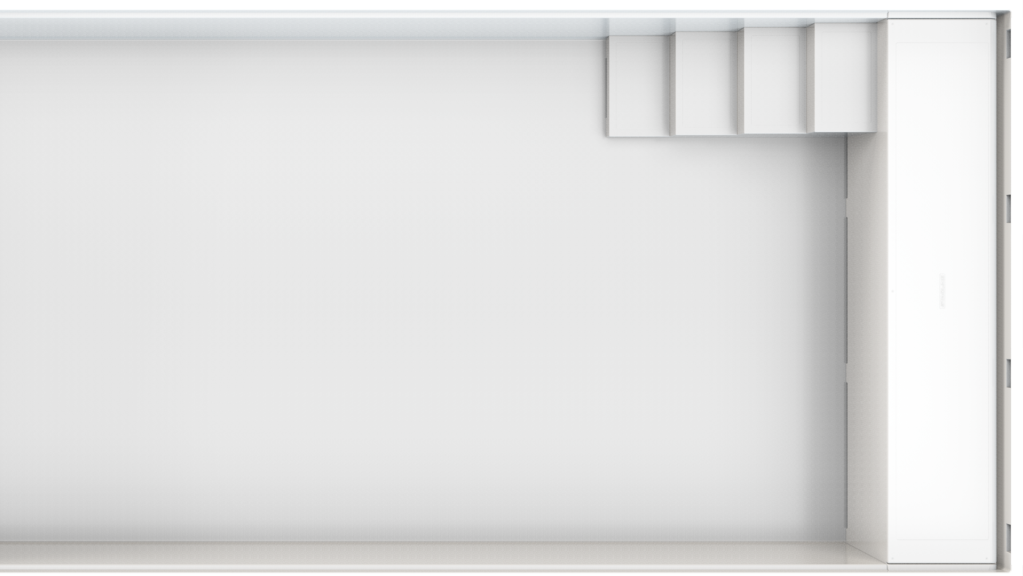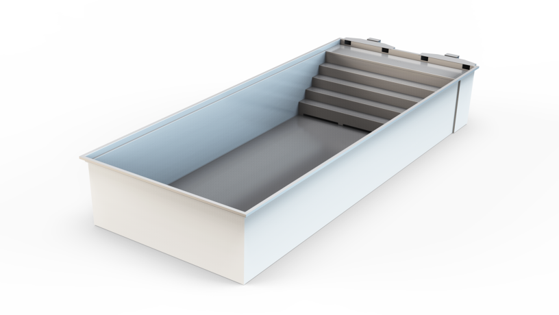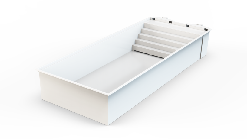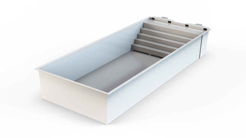 Pure eenvoud is het belangrijkste kernmerk van de Nova Line, wat tevens terug te zien is in de diverse Nova zwembadtrappen. De treden van de trap zijn voorzien van een antislip-structuur die zorgt voor een veilige entree van de Nova Line. Een Nova Line Starline zwembad heeft een minimalistisch design met strakke lijnen. De hoge waterlijn tot net onder de randstenen zorgt voor het unieke karakter van de Nova Line. Dat wordt mogelijk gemaakt door het innovatieve skimmersysteem. De skimmers zijn hoog in de wand van het bassin geïntegreerd en geven een mooie hoge waterlijn als resultaat. Door hun positie, net onder de boordstenen aan de korte zijde van het bad, zijn ze bijna helemaal uit het zicht verdwenen. De Nova Line is van duurzaam, volkomen glad afgewerkt composiet vinylester en uit één stuk vervaardigd.
