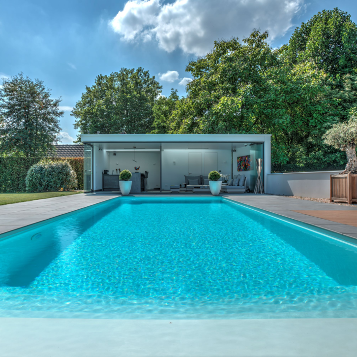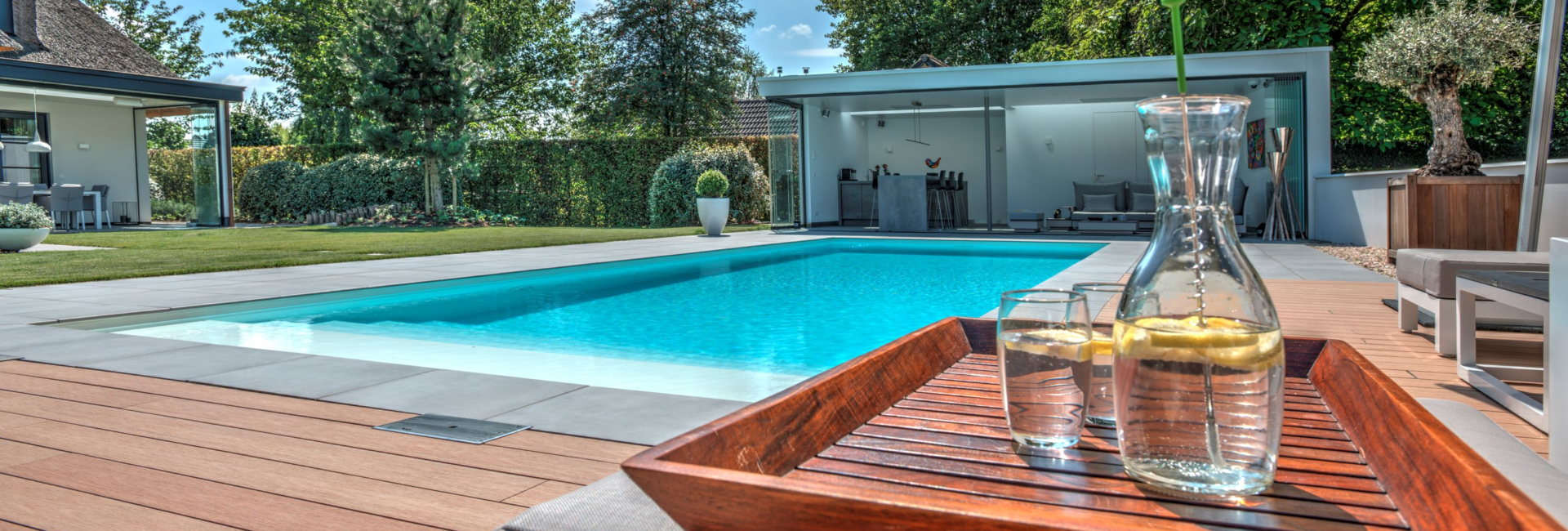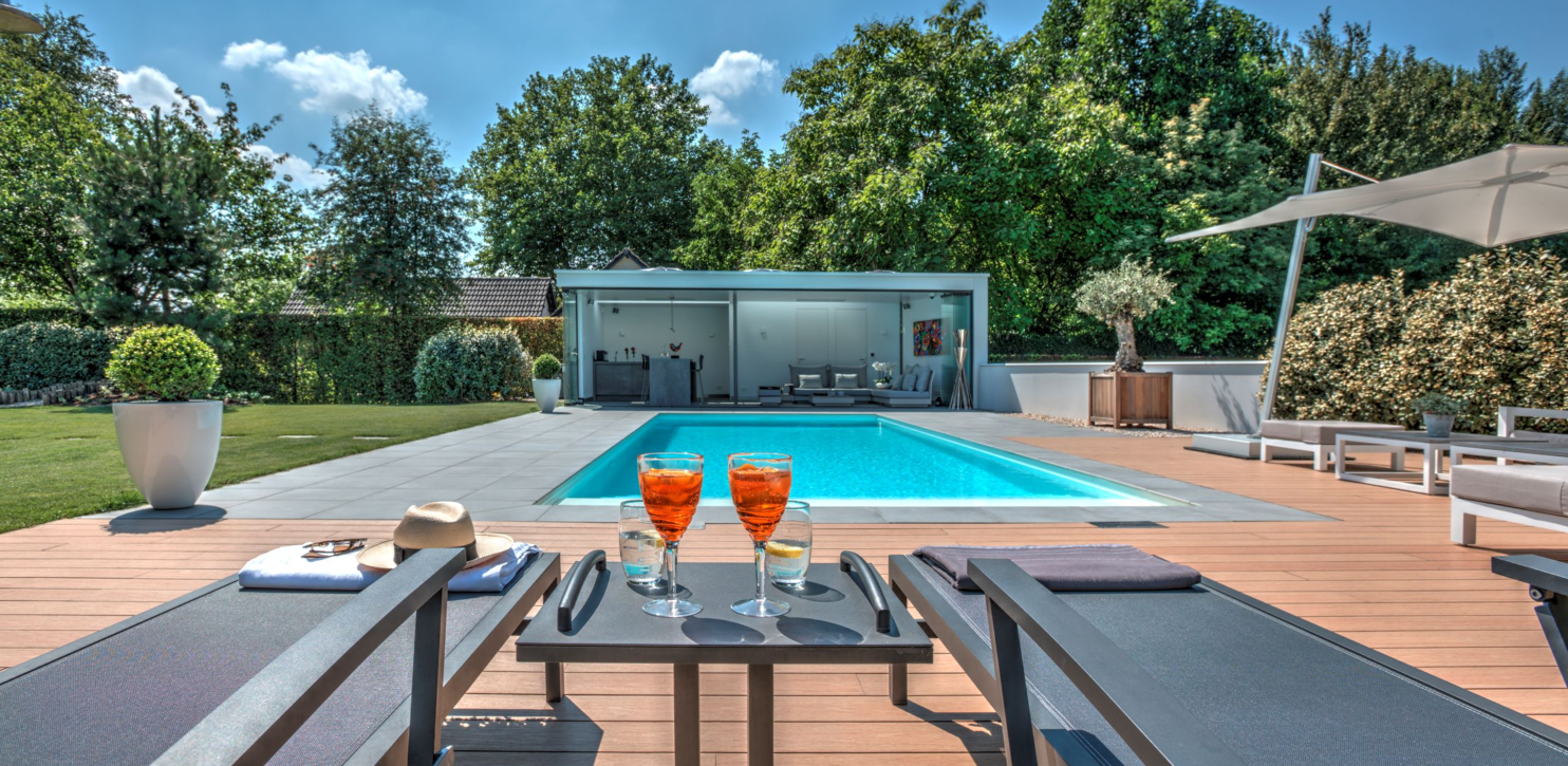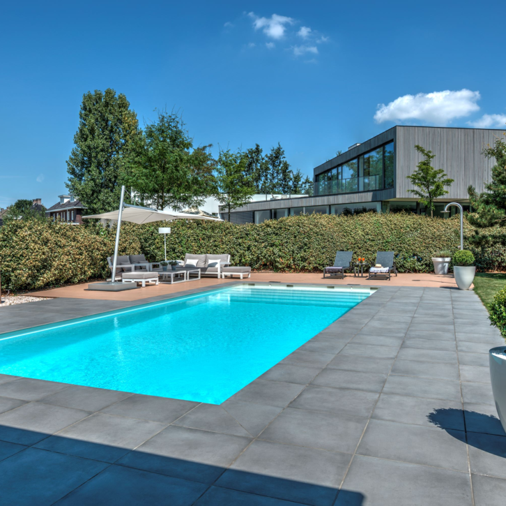 Dit prachtige witte zwembad is het middelpunt van deze compleet afgewerkte tuin. Als toevoeging aan deze tuin is deze prachtig open poolhouse toegevoegd wat de buitenbeleving helemaal compleet maakt. Om alle dagen te genieten van facaliteiten in eigen tuin.